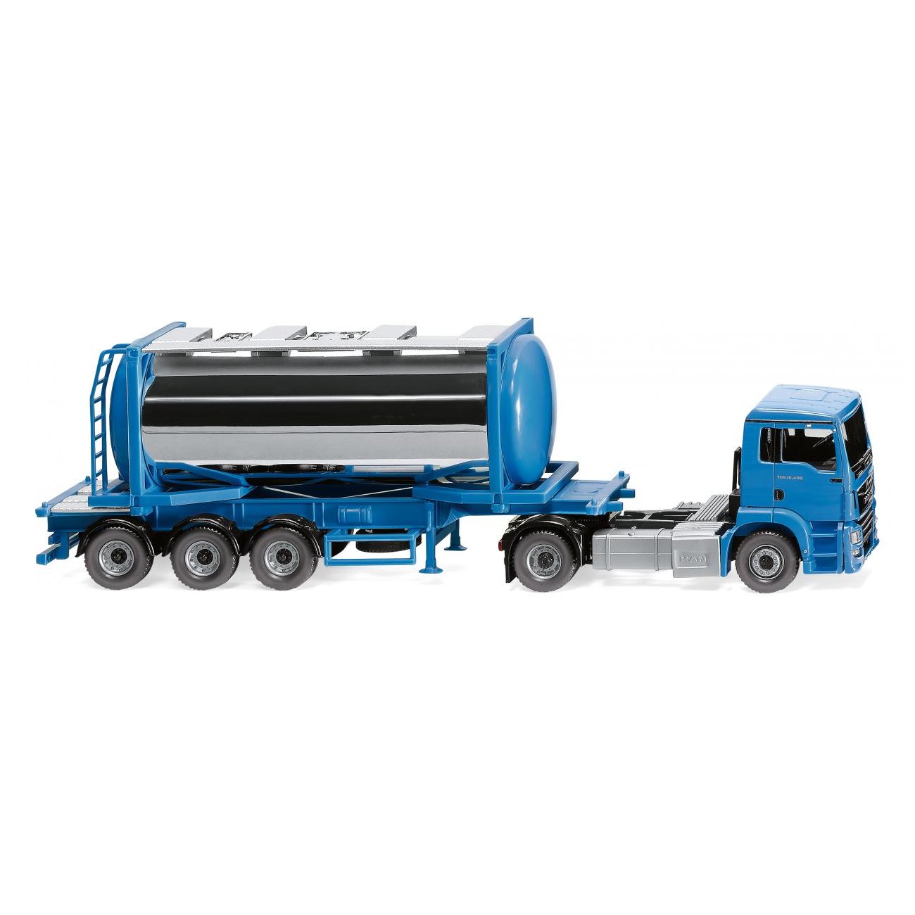 WIKING miniaturises the tank container logistics business and launches a flagship of technical advancement: With the MAN TGS, a new 20-foot tank container, whose real-world counterpart travels on roads and railways and, at times, by ship, is now finding its way into the hands of collectors. When paired with a matching trailer chassis – such as the type S.CF 30' Tank Schmitz Cargobull chassis chosen in this case – the tank containers can be transported with perfect ease. The three-axle original is designed to variably transport tank containers with a weight of up to 33,500 kg and a length of 20 and 30 feet, respectively. This makes it possible to create a host of compact true-to-prototype 1:87 combinations that strongly resemble the original thanks to the three-axle semi-trailer. The tank container is widely used both in the chemical industry and in the food industry.