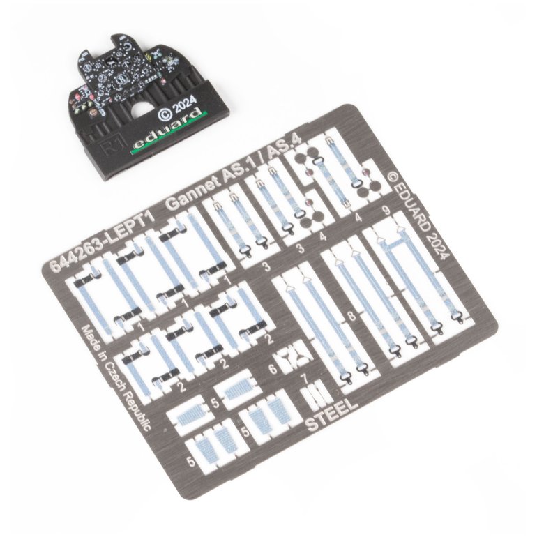 LööK set Brassin pre-painted dashboard and STEEL seatbelts for Gannet AS.1 and AS.4 in 1/48 scale.