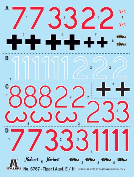 LINK AND LENGTH TRACKS OR GLUABLE RUBBER TRACKS - DECALS FOR 4 VERSIONS - COLORS INSTRUCTION SHEET