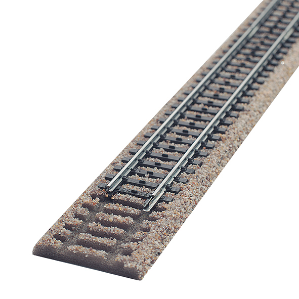 How realistic a model train landscape appears is determined by important details, such as the nature and the appearance of the trackbeds. With the MÖSSMER Trackbeds, which are modelled perfectly after the real-life example regarding form and colour, you will come very close to the original. The Trackbeds are complete elements made from Weichmoltopren. The depressions for tracks and railroad ties are already impressed into the elastic foam. Due to this form-fitting impression, the tracks lie in the trackbeds just as they do in the case of the original. The Moltopren almost claws into the tracks. The trackbed can be fitted to all radiuses due to the extrem flexability of the material.